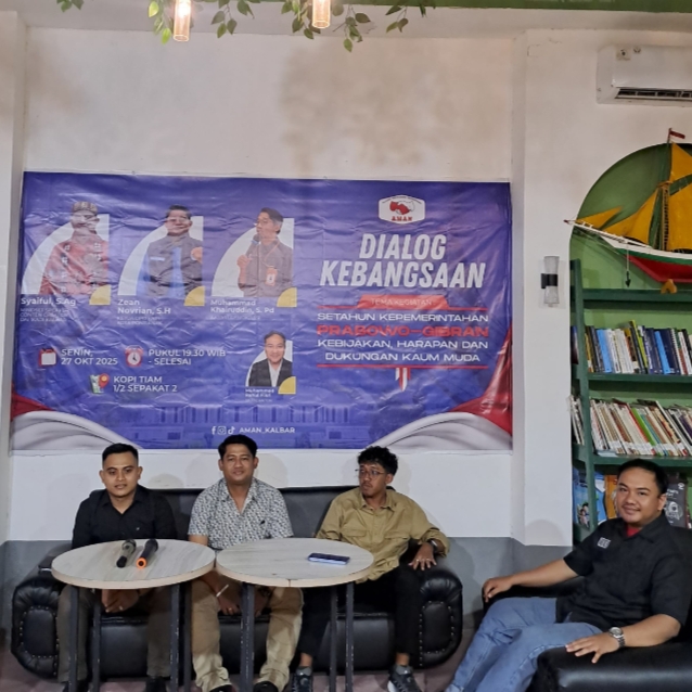 Pontianak, Aliansi Mahasiswa Nusantara (AMAN) menggelar Dialog Kebangsaan dengan tema “Menyambut Satu Tahun Pemerintahan Prabowo–Gibran, Kebijakan, Harapan, dan Dukungan Kaum Muda” pada Minggu, 27 Okt...