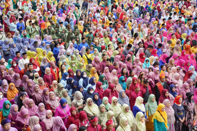 PONTIANAK – Ribuan guru berpakaian adat daerah mengikuti upacara Peringatan Hari Guru Nasional (HGN) di halaman SMP Negeri 8 Pontianak Tenggara, Senin (25/11/2024). Upacara peringatan HGN ini diikuti oleh seluruh guru mulai dari tingkat PAUD, TK, SD dan SMP negeri maupun swasta.