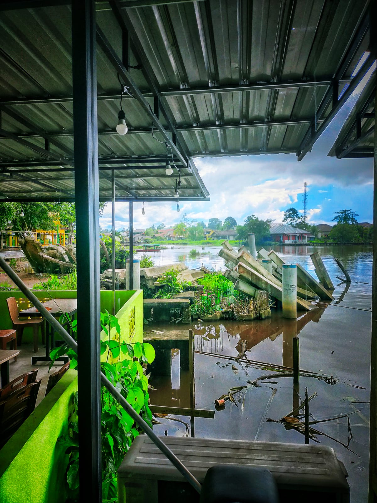 Bayangkan ini, wak! Sungai yang mestinya cantik, romantis, jadi tempat nongkrong batang-batang beton. Berdiri kaku, seperti sedang merenungkan dosa siapa yang membuatnya ada. Sungguh seni instalasi yang tidak diminta. Katanya proyek 8 miliar, tapi hasilnya? Tertancap di sungai, seperti akar mimpi yang tak pernah tumbuh.