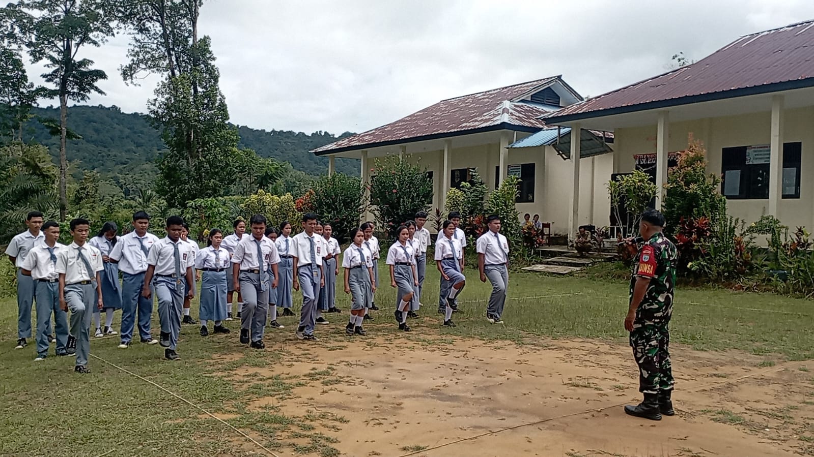 lintasnews, Bengkayang – Dalam rangka melatih karakter kepemimpinan para pelajar, Babinsa Koramil 05/Smltn Koptu Ari Pramono dan Koptu Hermansyah, berikan materi Pelatihan Tata Upacara dan Latihan Dasar Kepemimpinan (LDK) SMAN 3 Polongan Dusun Polongan Desa Saba, Kec.Samalantan Kab.Bengkayang.
